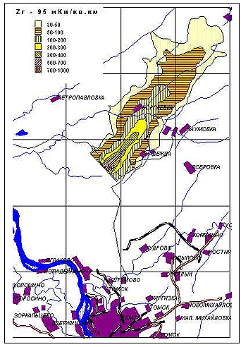 Схема радиоактивного следа, полученная по данным наземной радиационной