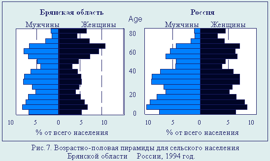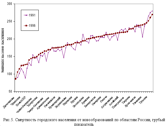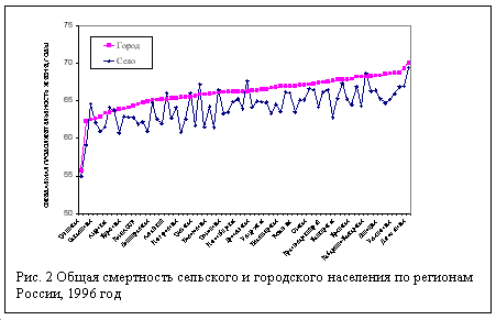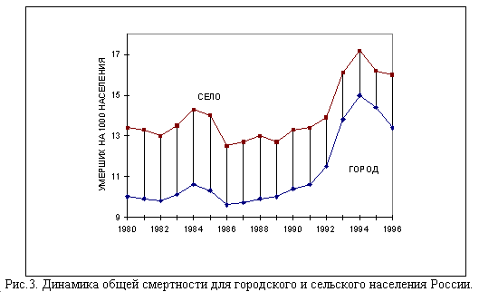 городской и сельской смертности показана на рис. 3. В 1996 г.